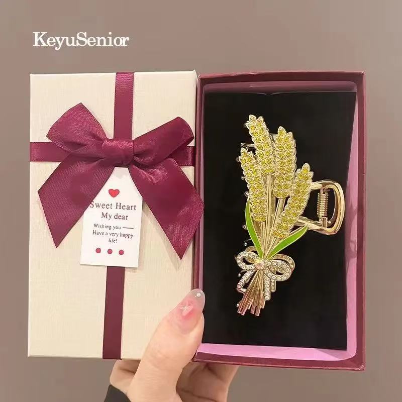 プレゼント麦穂ヘアクリップ後頭部誕生日ギフトボックス古風クリップは彼女の高級サメクリップ流蘇ヘアカードをプレゼントします
