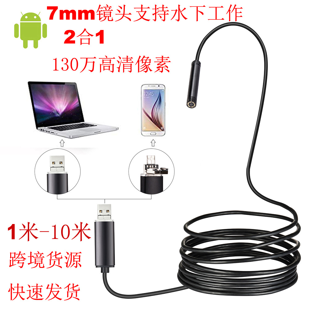 7mm安卓携帯電話内視鏡高精細防水usb200万カメラプローブ配管検査1メートル10メートル