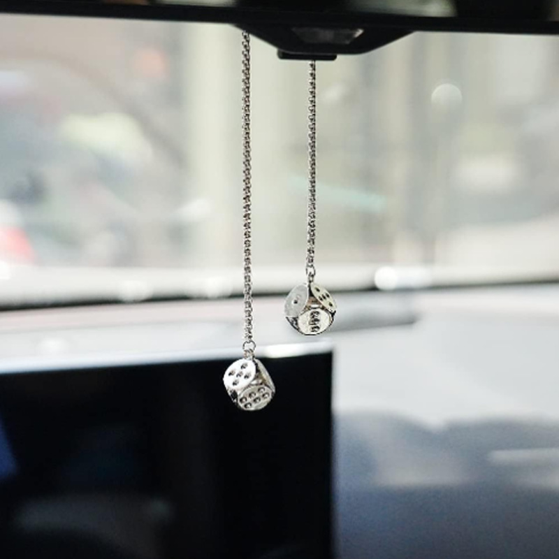 2023アマゾンカー用品車載バックミラーストラップ車内装飾金属サイコロストラップ