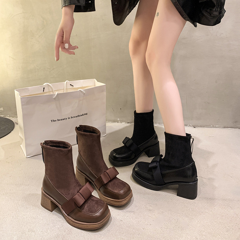 2025年秋冬新作、レトロでスタイリッシュな太ヒールショートブーツ、小柄な女性向け、スカートに合うハイヒール、マーティンブーツ