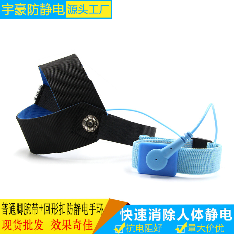 工場直売ブルーダブル保険静電気防止足環ブルーブラック布組合せ式足首帯静電気防止足腕帯