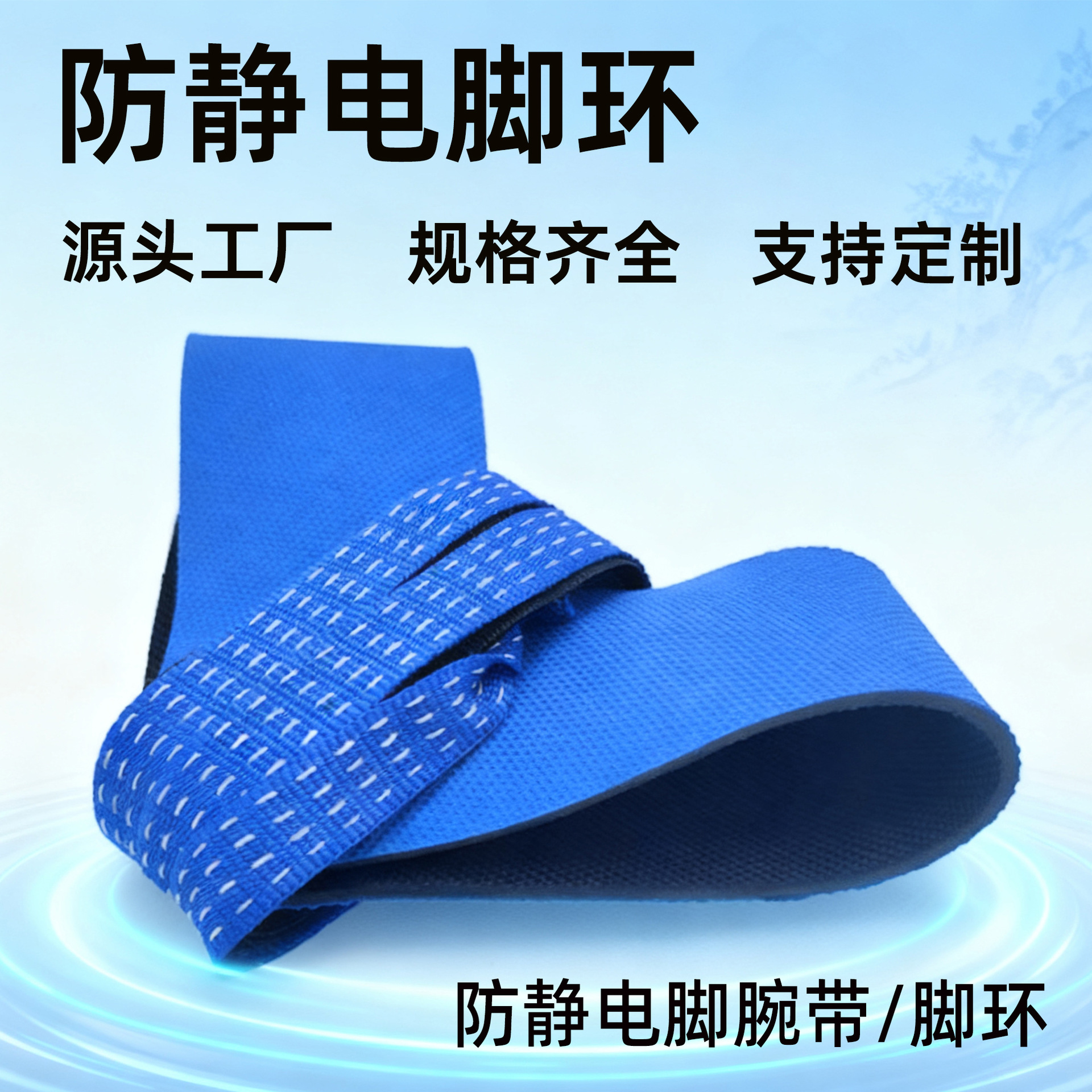 跨境热卖防静电脚腕带车间蓝色静电脚环女款脚筋带橡胶接地导电带