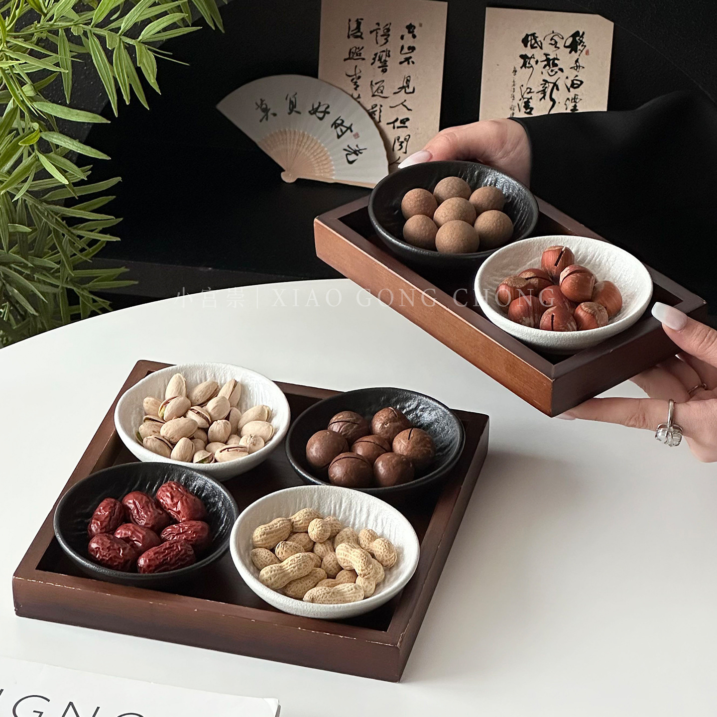 中式胡桃木坚果盘轻奢分格果盒带盖客厅零食干果盒高颜值糖果盒