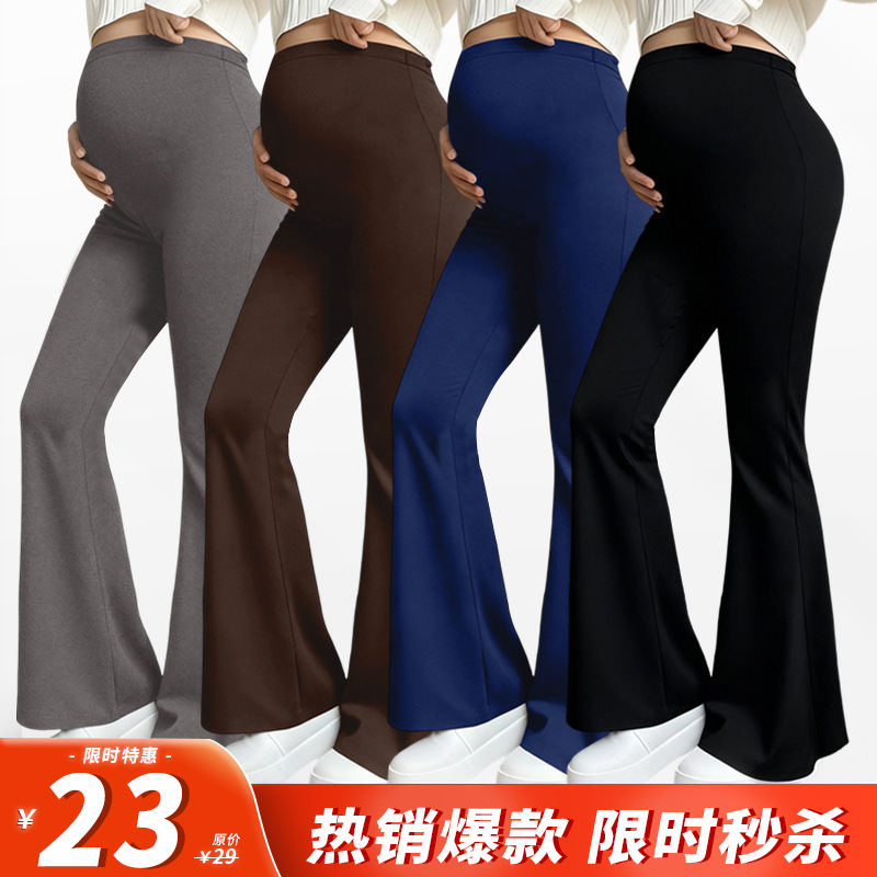 跨境新品孕妇打底裤孕妇紧身瑜伽服喇叭裤秋冬新品高腰托腹外穿