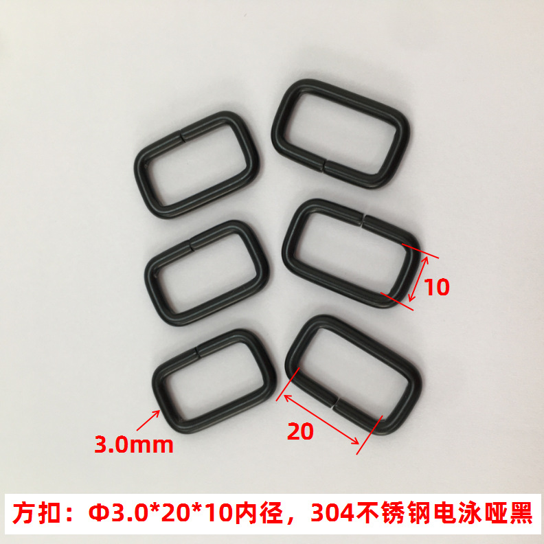 メーカー 304 ステンレス鋼電気泳動マットブラックスクエアバックル 3.0*20 錆びない長方形バックル 6 点バックルバッグバックル