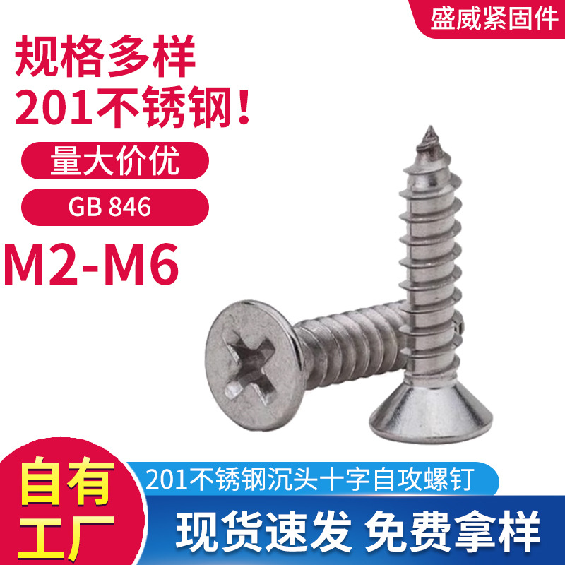 201ステンレス鋼セルフタッピングネジ皿頭平頭十字セルフタッピングネジGB846木ネジセルフタッピングネジM2-M6