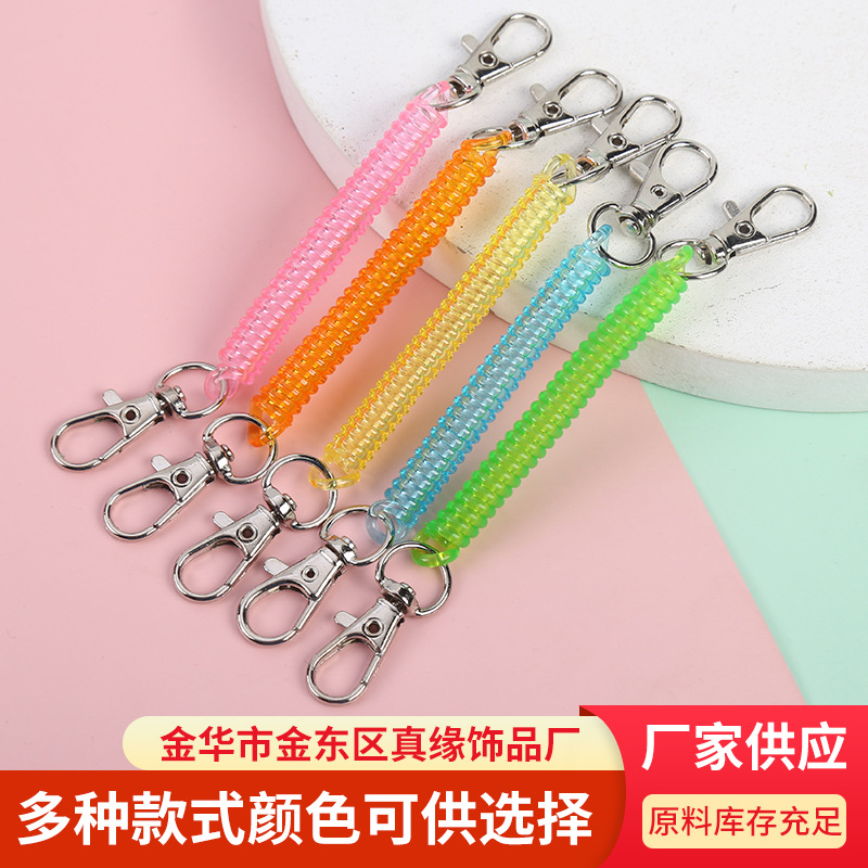 伸縮自在のプラスチック製スプリングロープキーホルダー、プチギフト、おもちゃ、ペンダント、卸売キーチェーン、バッグアクセサリー、飾り