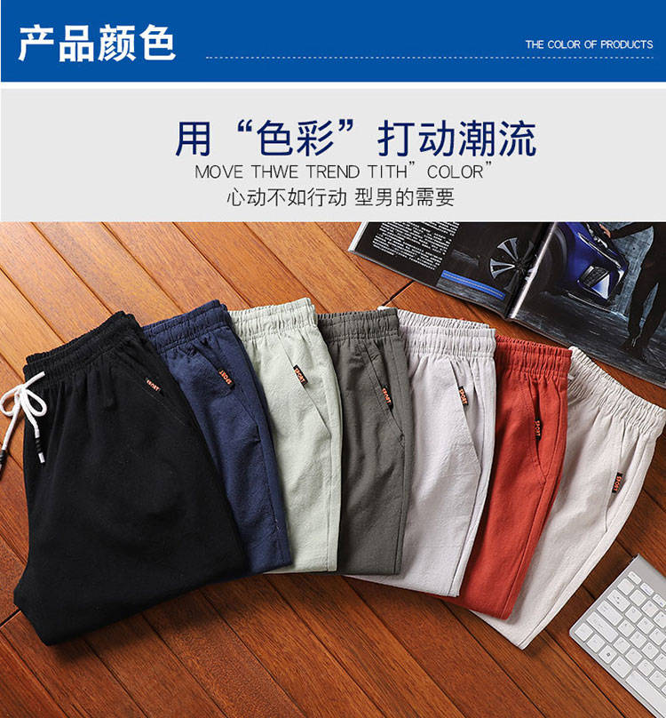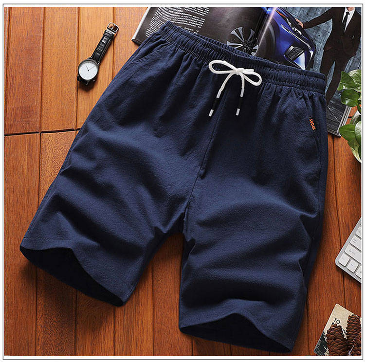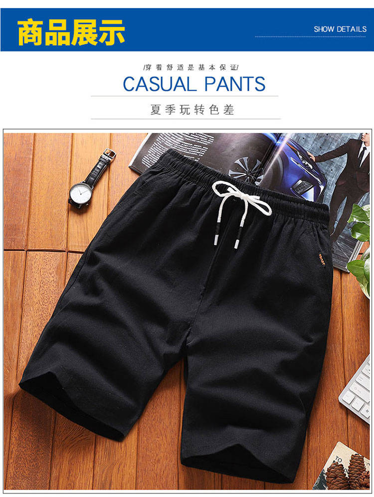 夏の薄いタイプのカジュアルなズボンの男性の半ズボンの5分のズボンのゆったりしたカジュアルなビーチのズボンの純色の綿の学生の綿の麻の半ズボン