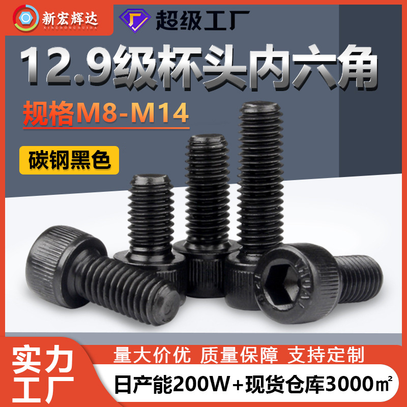厂家现货12.9级高强度圆柱头内六角螺栓 M5M6杯头内六角机螺丝