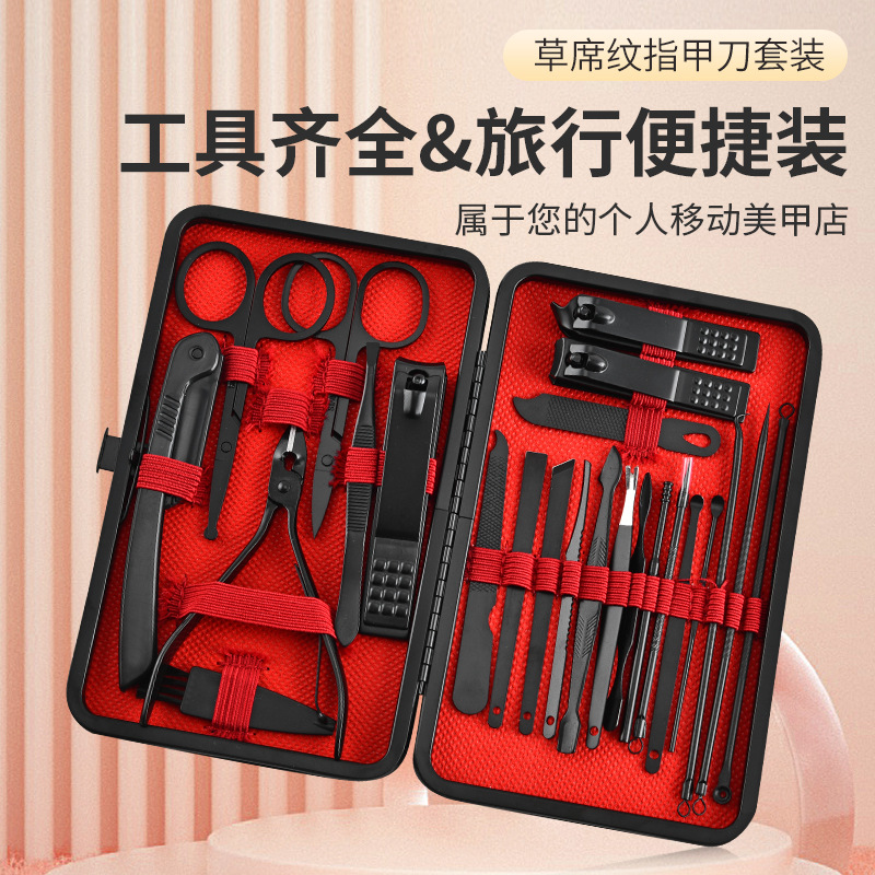 クロスボーダースポット爪切りセットステンレス鋼ブラック 24 ピースマニキュアツールフルセットネイルカッター