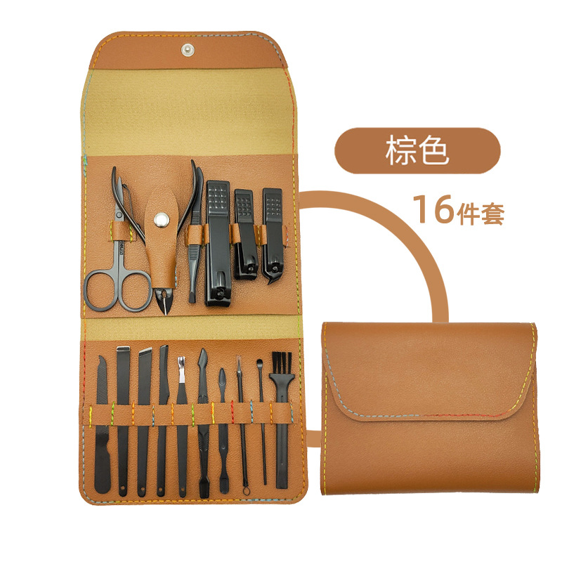 スポット爪切りセット黒爪切り折りたたみバッグ 16 ピースマニキュアツールセットステンレス鋼爪切り