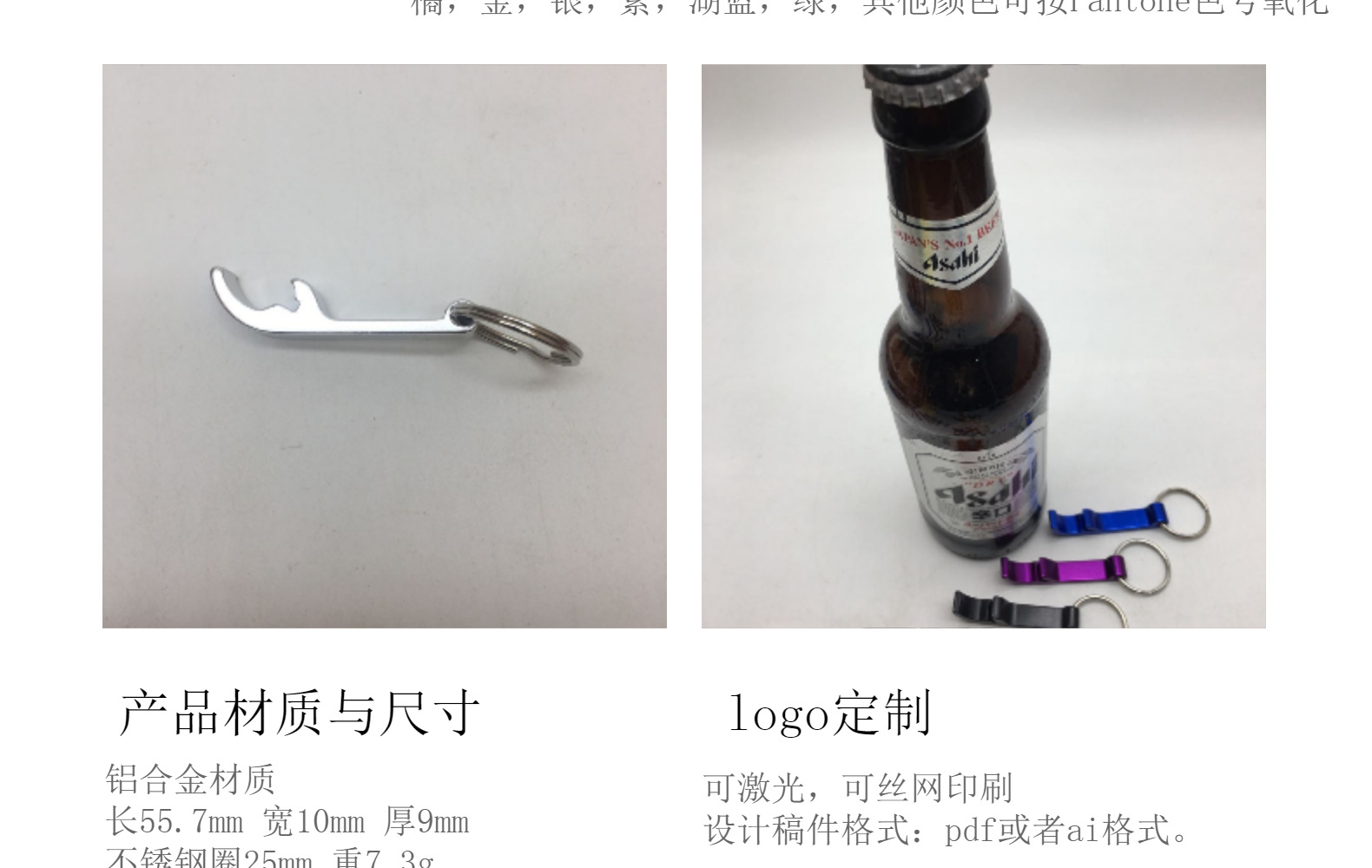 logo方式:通常激光镭射,快速、无制版费、经久不褪;彩色丝印也可以