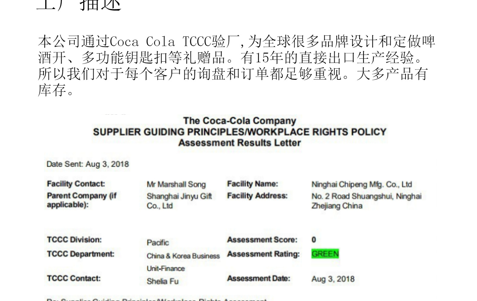关于生产交货:我们对于合作供应商大多采用现款方式结算,会在非常短的时间内购齐物料,把加工流程无缝隙衔接起来;我们车间管理灵活,员工友善,对于紧急的订单,在配件充足的情况下,都会在1-2天内加班加点发出。
