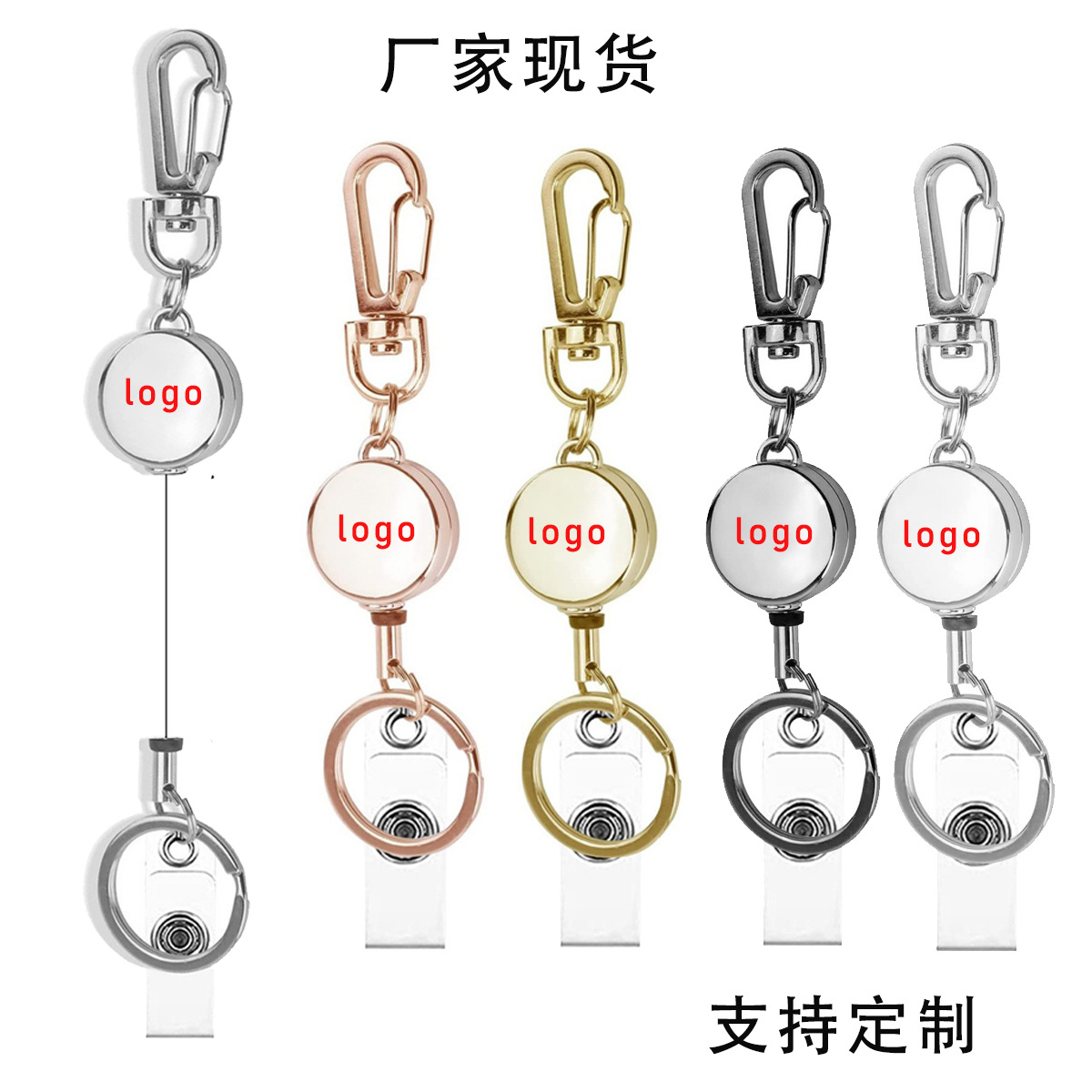 厂家现货易拉扣拉线器金属易拉得防丢钥匙扣锌合金2.5cm证件挂件
