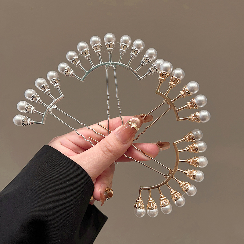 パールU字型ヘアピン、古代風漢服ヘアアクセサリー、古代衣装ヘアクラウン、唐風明製ヘアピン、U字型ヘアピン