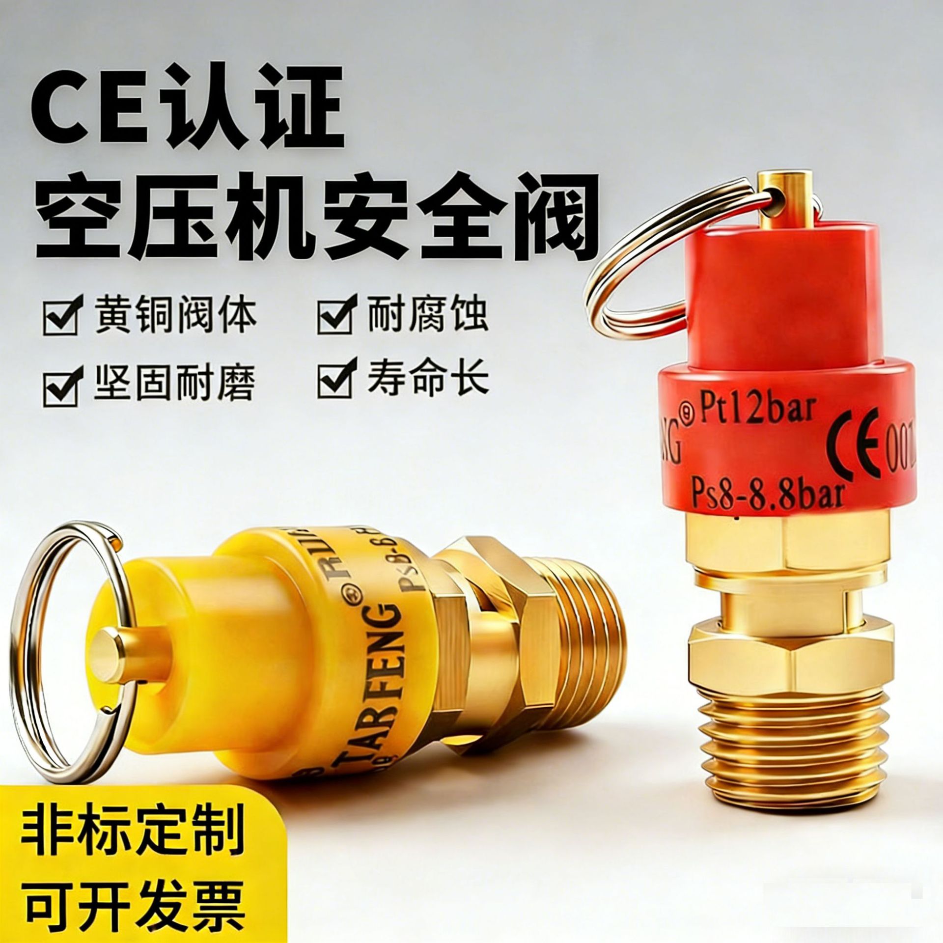 CE认证空压机安全阀弹簧全启式超压保护阀2分小红帽气排气泄压阀