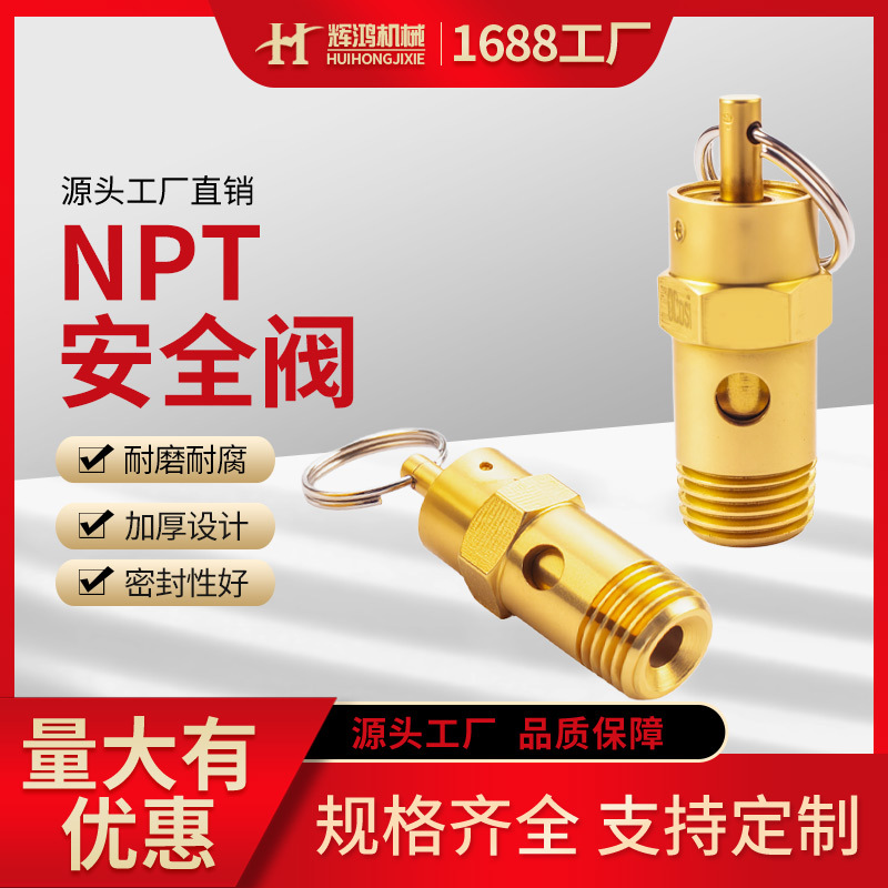 NPT螺纹空压机安全阀2分美式全铜泄压阀活塞机气泵弹簧式排气阀