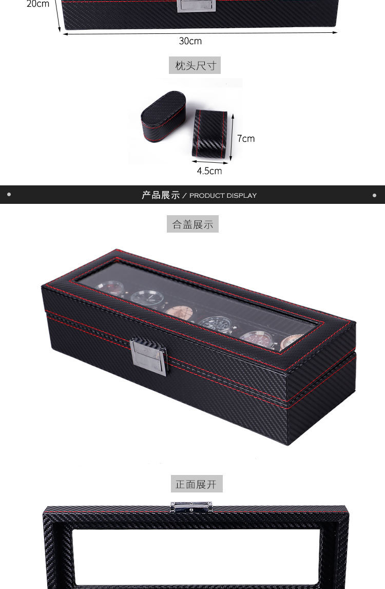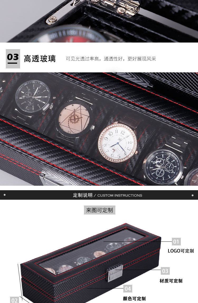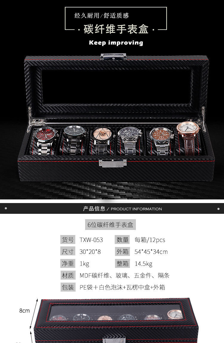 メーカー直供6位全炭素繊維腕時計ケースジュエリー収納展示包装現物透明開窓時計ケース