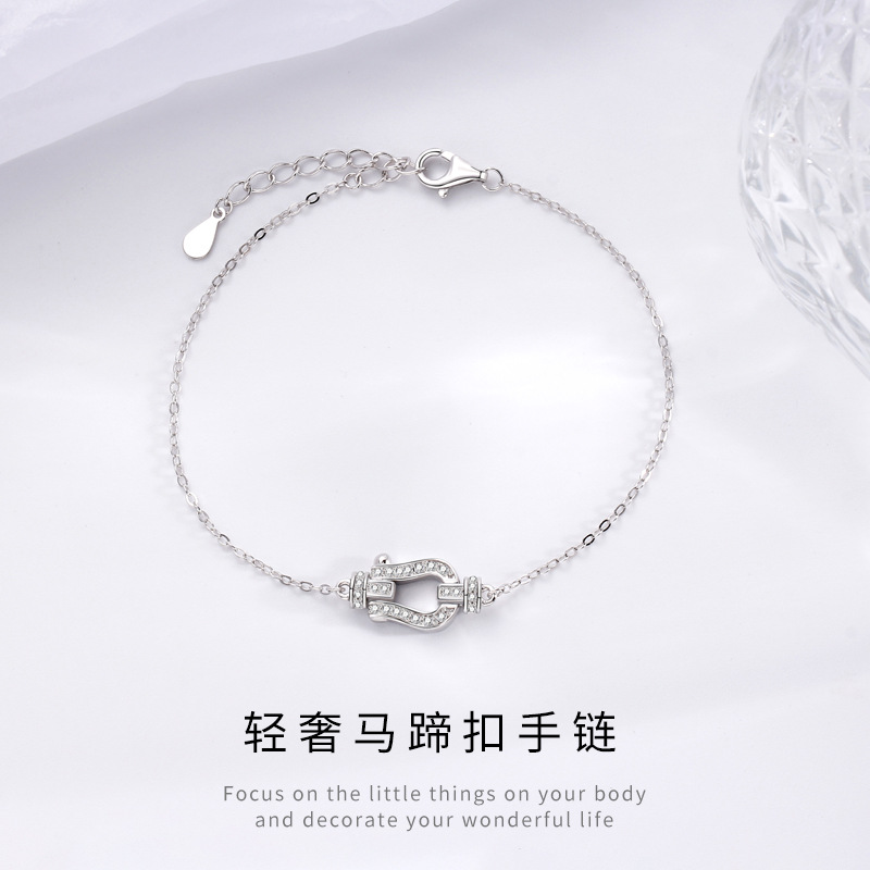 S925纯银马蹄扣手链女微镶满钻轻奢小众百搭时尚设计个性热卖手饰