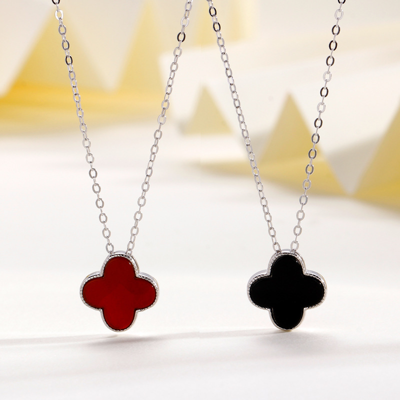 S925纯银双面四叶草项链女百搭时尚高级设计感玛瑙贝母吊坠项饰女