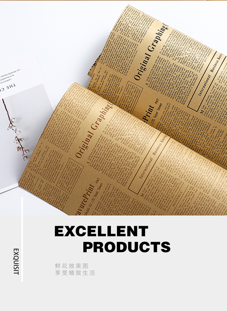英語新聞牛皮純色花束包装紙復古生花バラ包装材料花屋用品