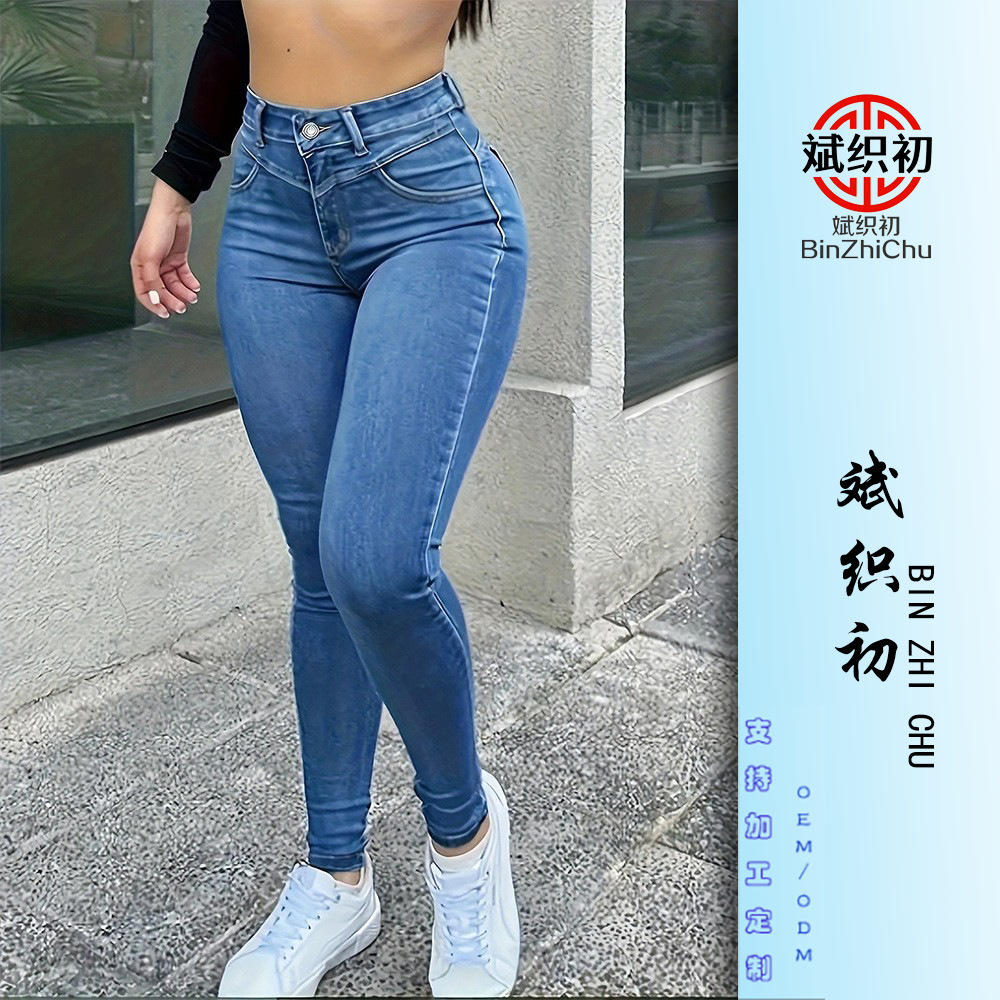 クロスボーダー高腰弾力修身小足ズボンshaping jeans