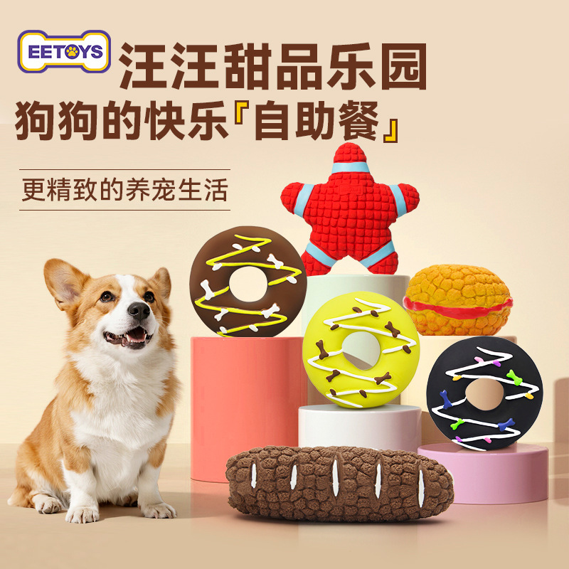 Yite ペット犬のおもちゃデザートシリーズラテックス噛みつきにくいドーナツヒトデ絞り音インタラクティブ犬のおもちゃ
