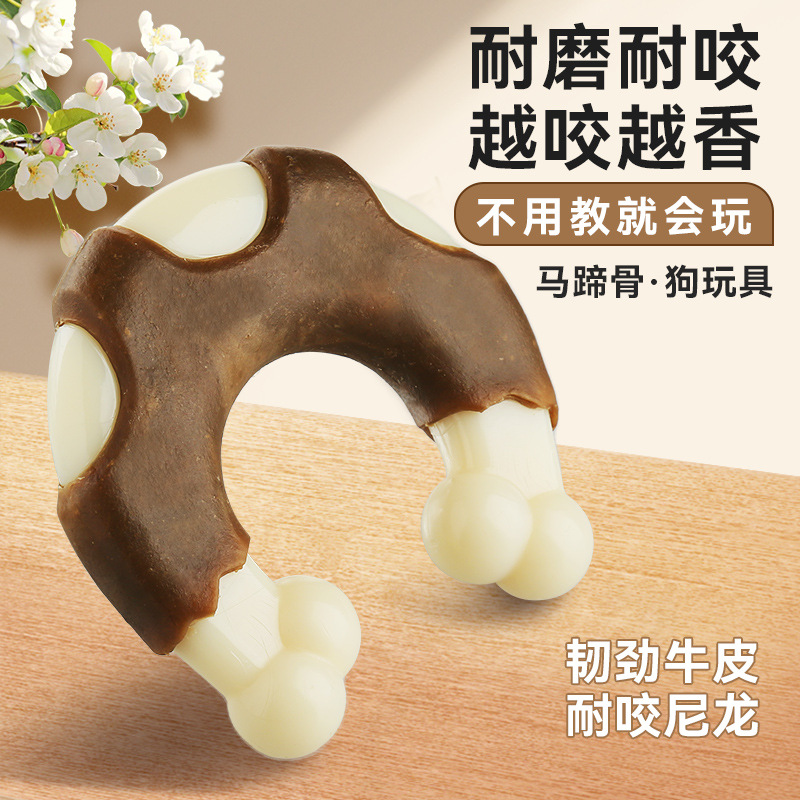 ペット犬用おもちゃ、越境新商品、馬蹄骨型ナイロン牛革製、噛む・歯ぎしりに最適、耐久性のあるペット用品おもちゃ