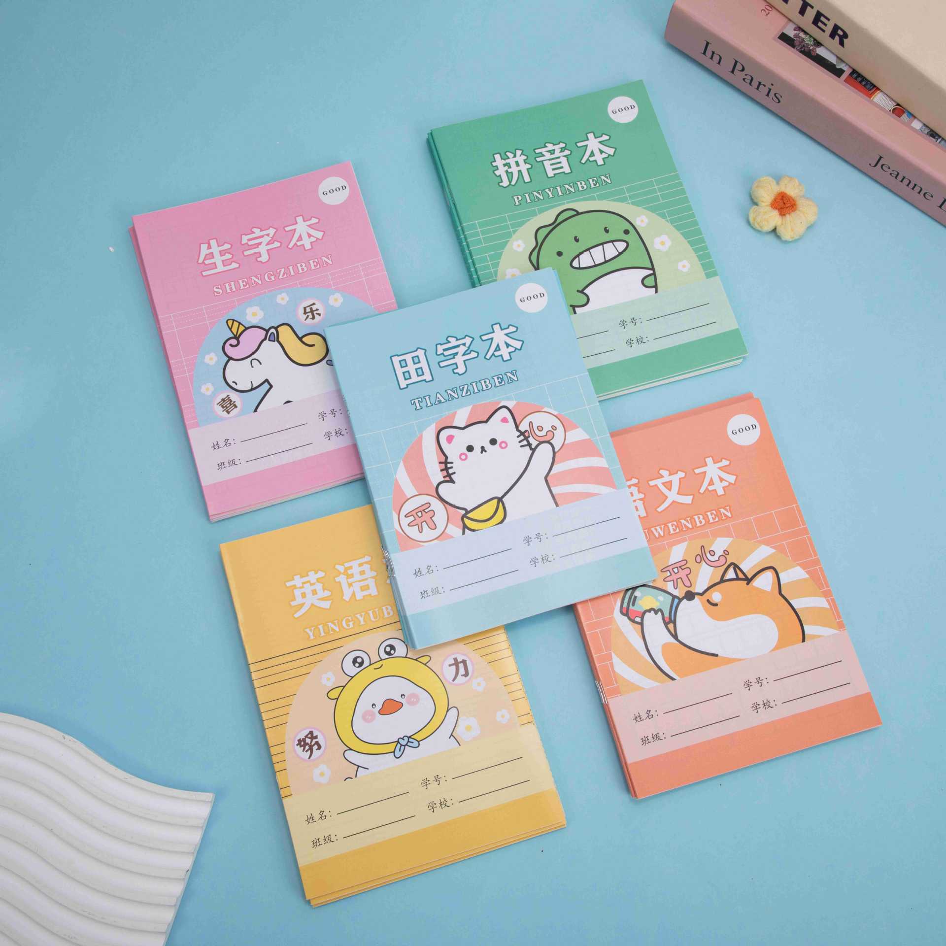 小学校の宿題帳の田字格本のつづり本の幼稚園の練習の薄い英語の本の数学の本の単語のテキスト