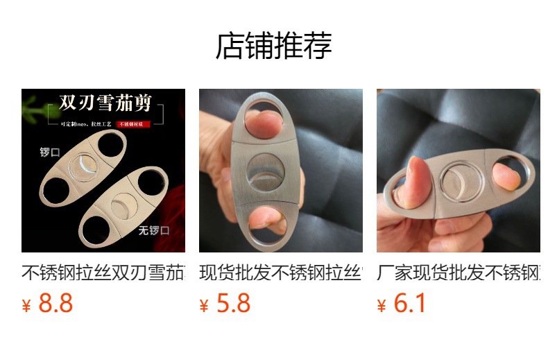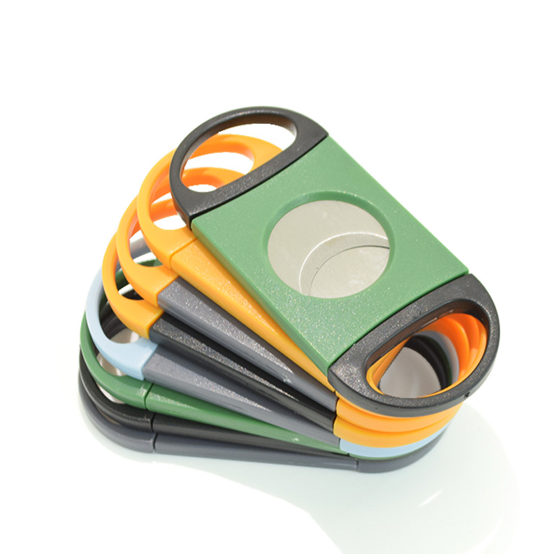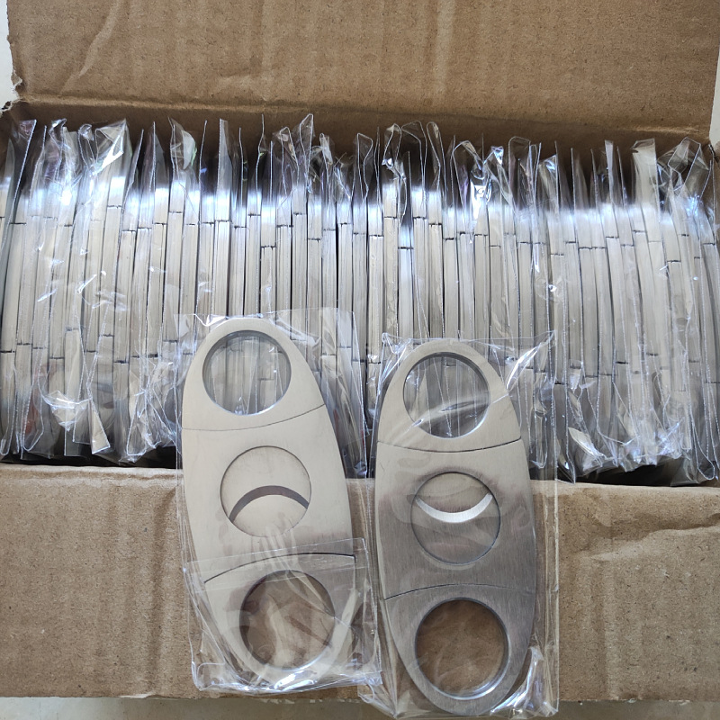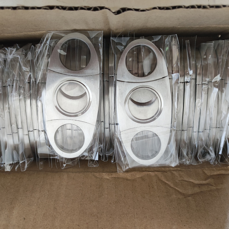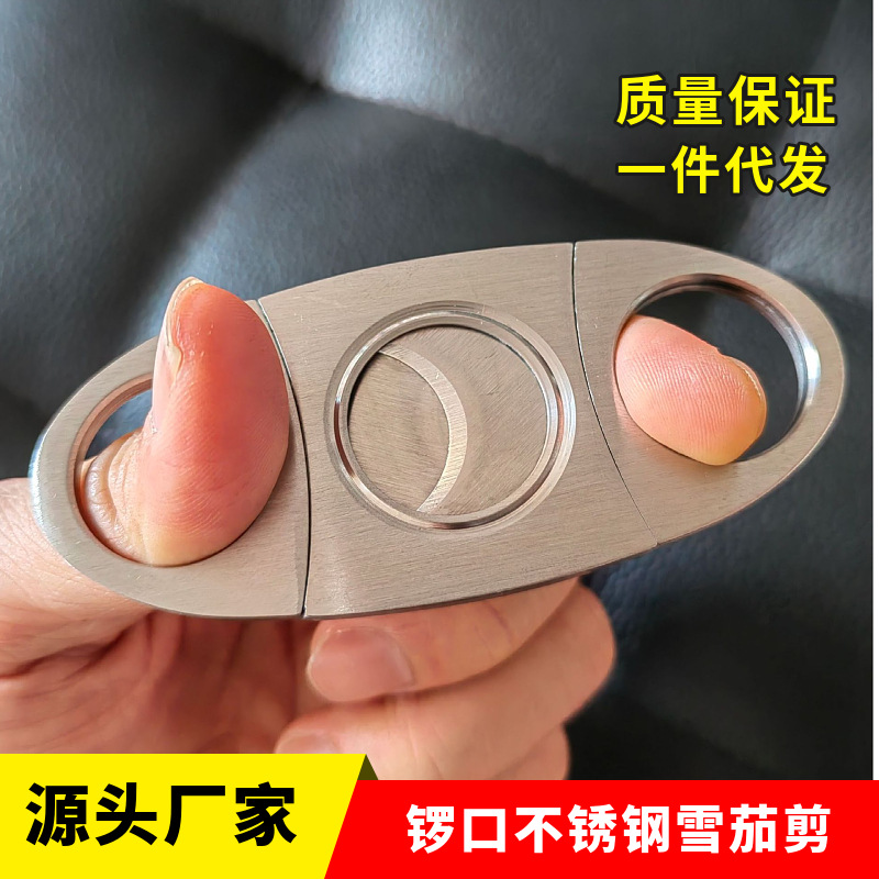 现货批发不锈钢双刃雪茄剪刀欧美便携拉丝锋利塑料雪茄剪送男士