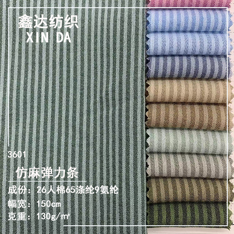 ファッション色織弾力条シャトル織り人綿混紡弾力模造麻条春夏ワンピース上着婦人服生地