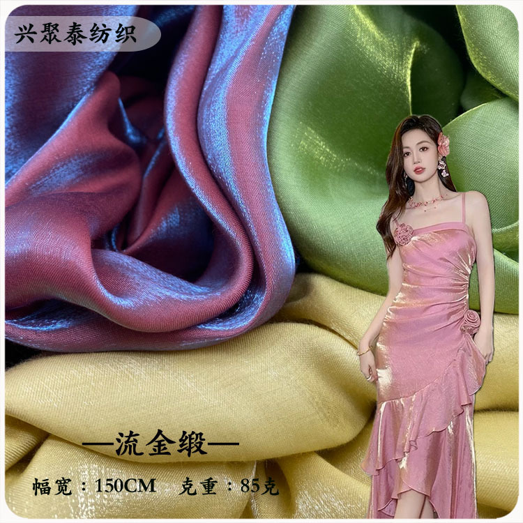 現物金光綿生地グラデーション色丁サテン漢服シャツファッション生地卸売り