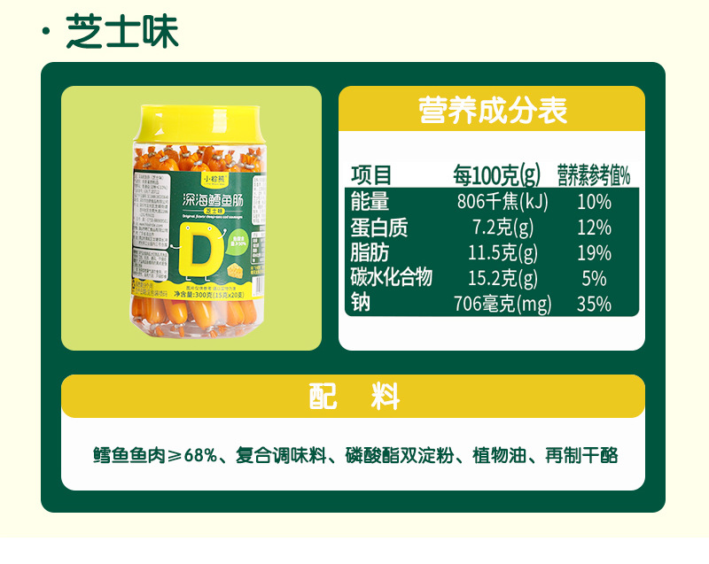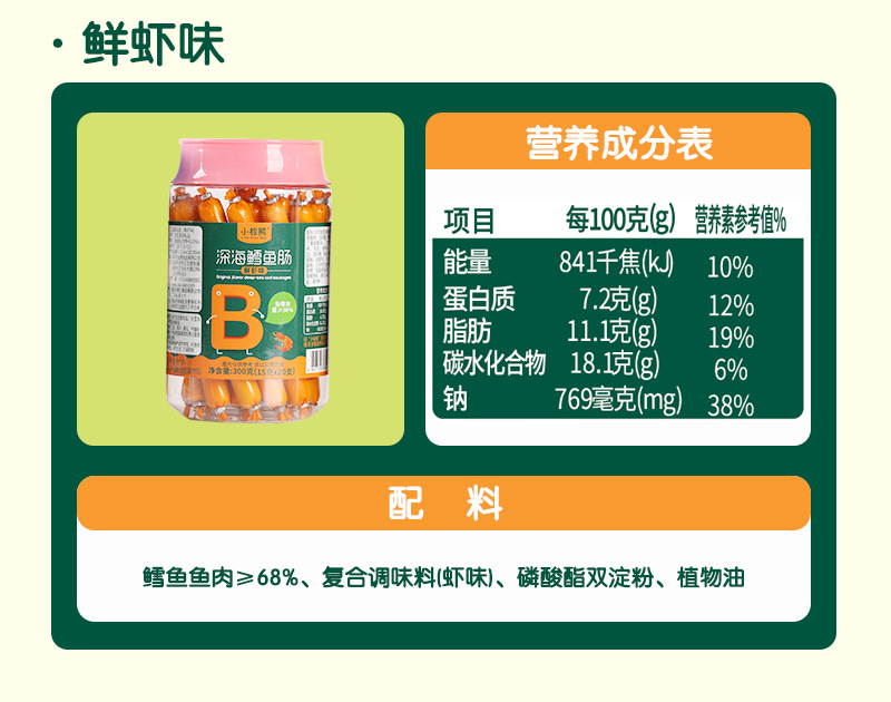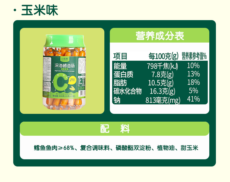 香港小ヒグマ魚腸タラ腸健康間食300g 20本 * 15g深海タラ棒多味
