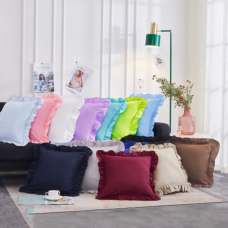 インスタイルフリル枕無地ベルベット枕カバーリビングルームソファオフィスソフトバッククッションカバー