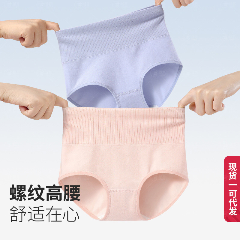 純綿女性用ハイウエストお腹引き締めヒップアップ無地通気性三角パンツ100%綿クロッチ秋冬人気レディース下着