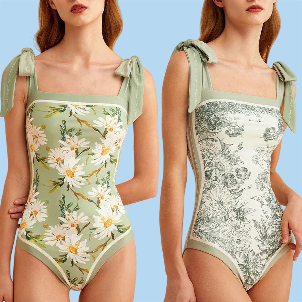 国境を越えて人気の海外水着、ワンピース型のタイトフィット両面プリント水着、チューブトップスタイルのレトロな女性用水着