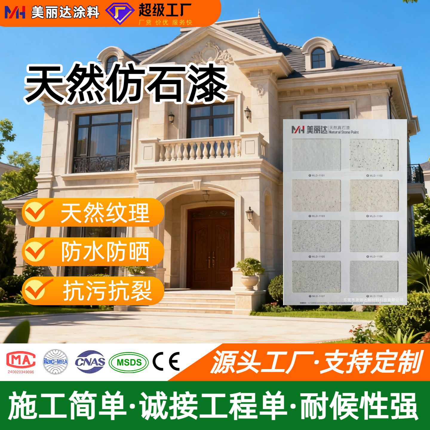 真石漆外壁漆天然多彩漆水包砂模造石漆別荘外壁メーカー直販