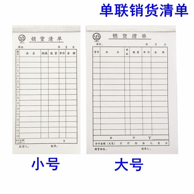 【特点】:无封面单联销货清单 单联无存根 易撕胶装 印刷清晰 纸质平整顺滑