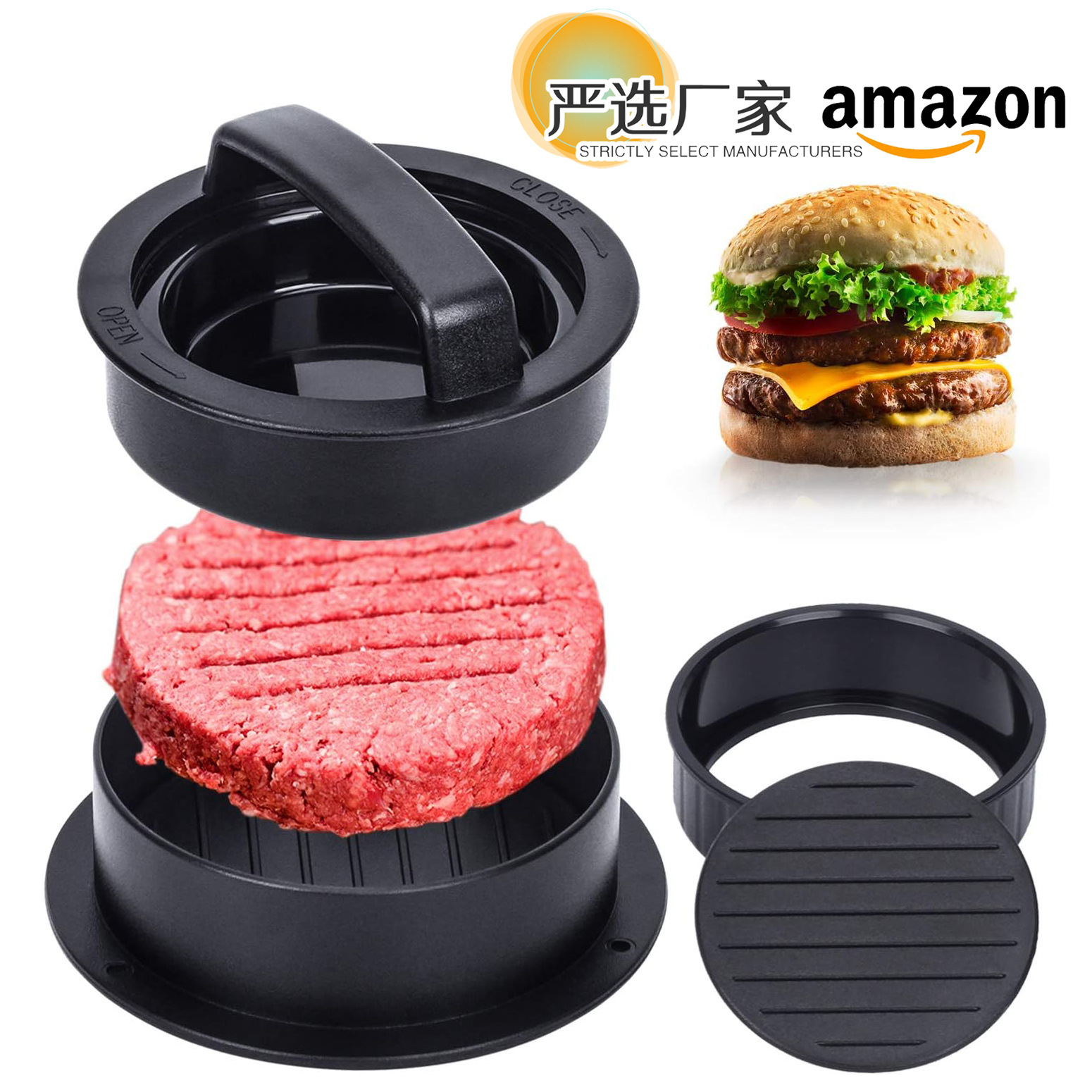 直销汉堡压肉器压肉模具铁板烧汉堡工具厨房圆形压肉饼工具压模
