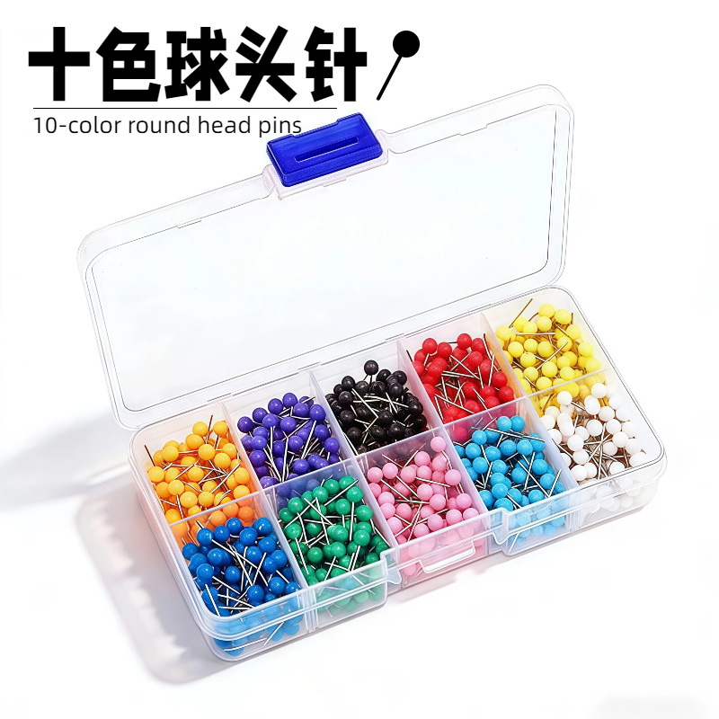 厂家批发十色地图钉球头针留言板照片墙固定装饰大头定位针盒装
