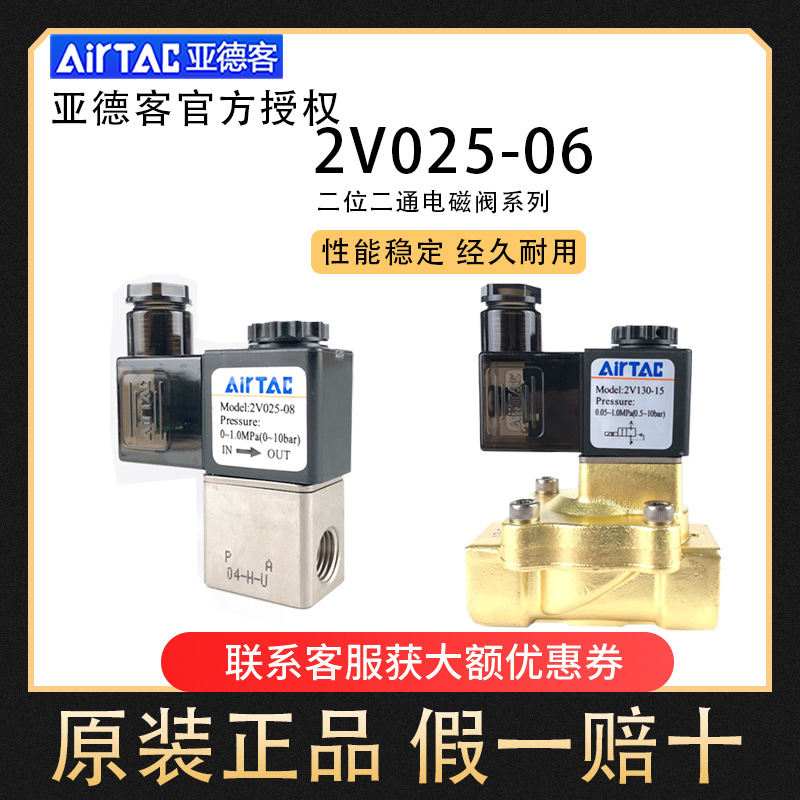 亜徳客電磁弁二位二方弁2v025e6/2v025-08a/2v130-10/2v130-15b