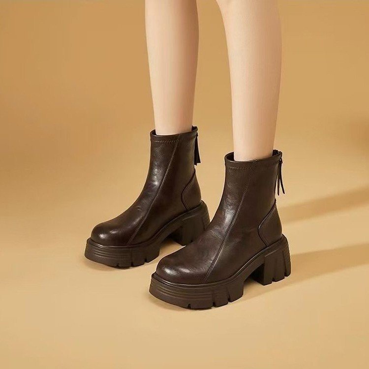 厚底切尔西女靴2025秋冬季高跟马丁靴新款时尚软皮增高英伦风短靴