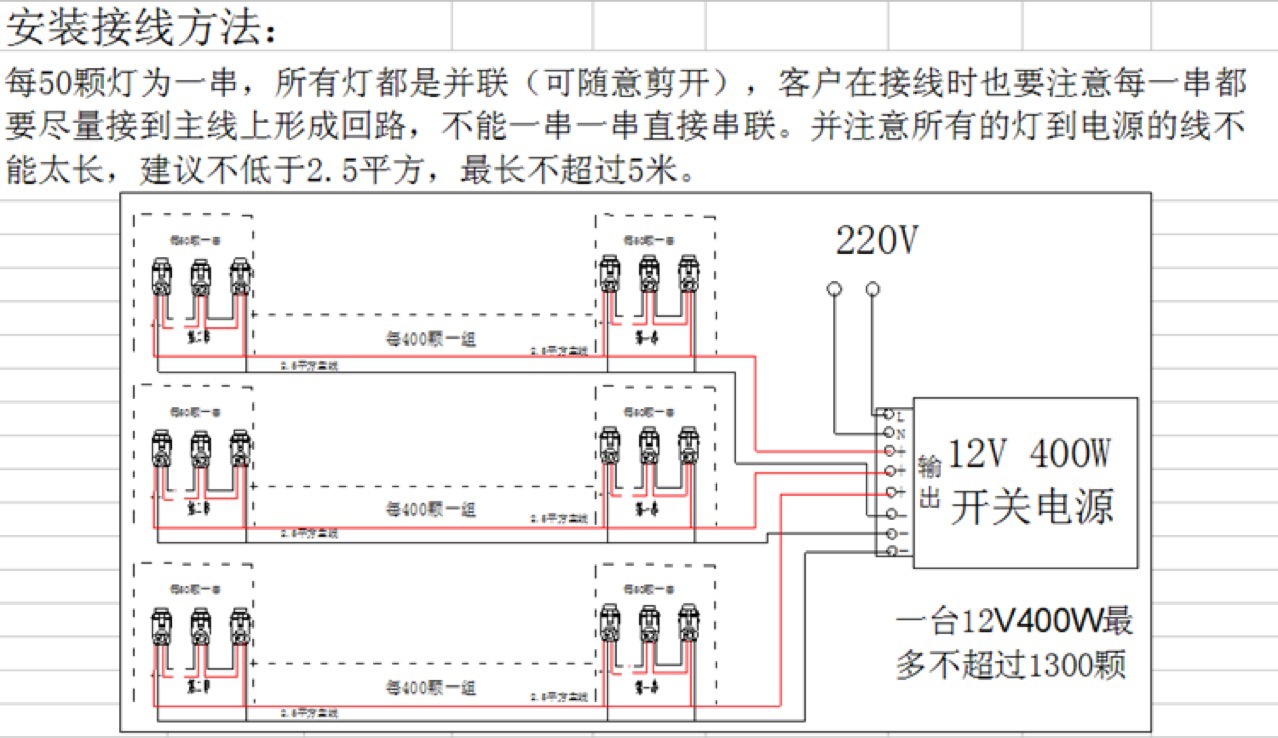 光源功率 发光字穿孔灯串