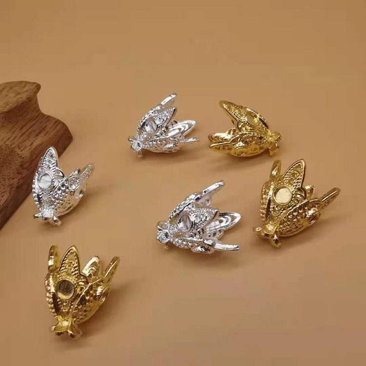 Diyアクセサリーイヤリング古風花嫁ヘアピン手作り材料15mm金属ベルト吊り蝶卸売り