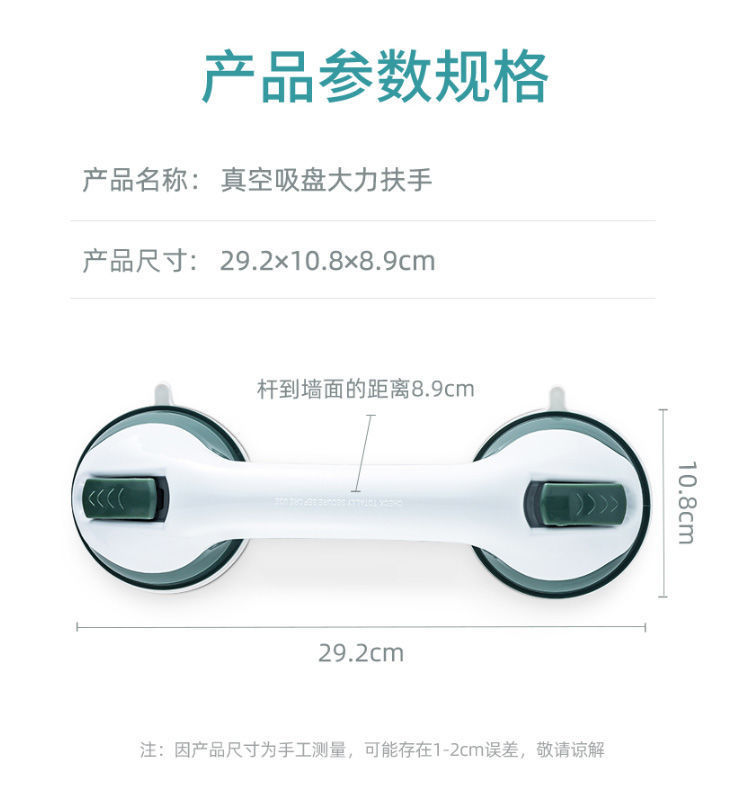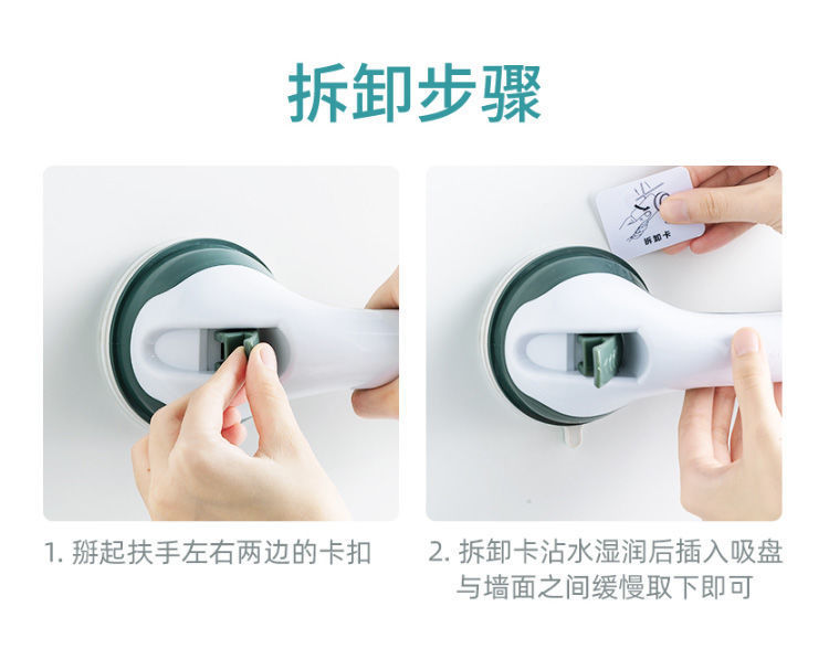 使用功能:这款浴缸扶手出于美国的新产品;吸盘式设计把它吸在浴缸上两边开关轻轻一按,就能把它牢牢固定在光滑面上;一个成年人用尽全力都拉不动的超吸强力。但又可以快速拆卸到安装到其他地方使用,除有空气出入的不光滑表面不能固定;其他地方都可以轻松安装,不像其它的扶手只能固定一个地方。