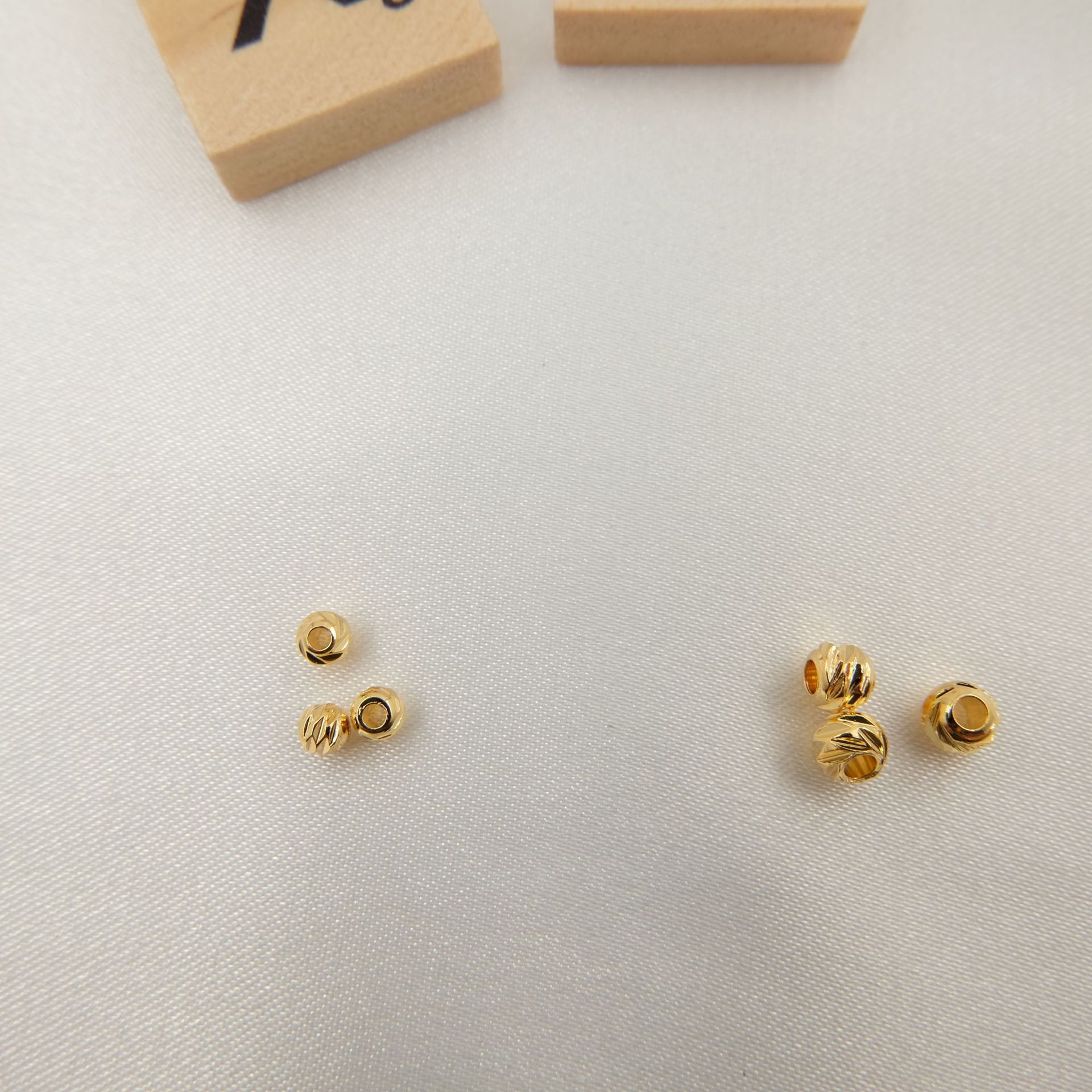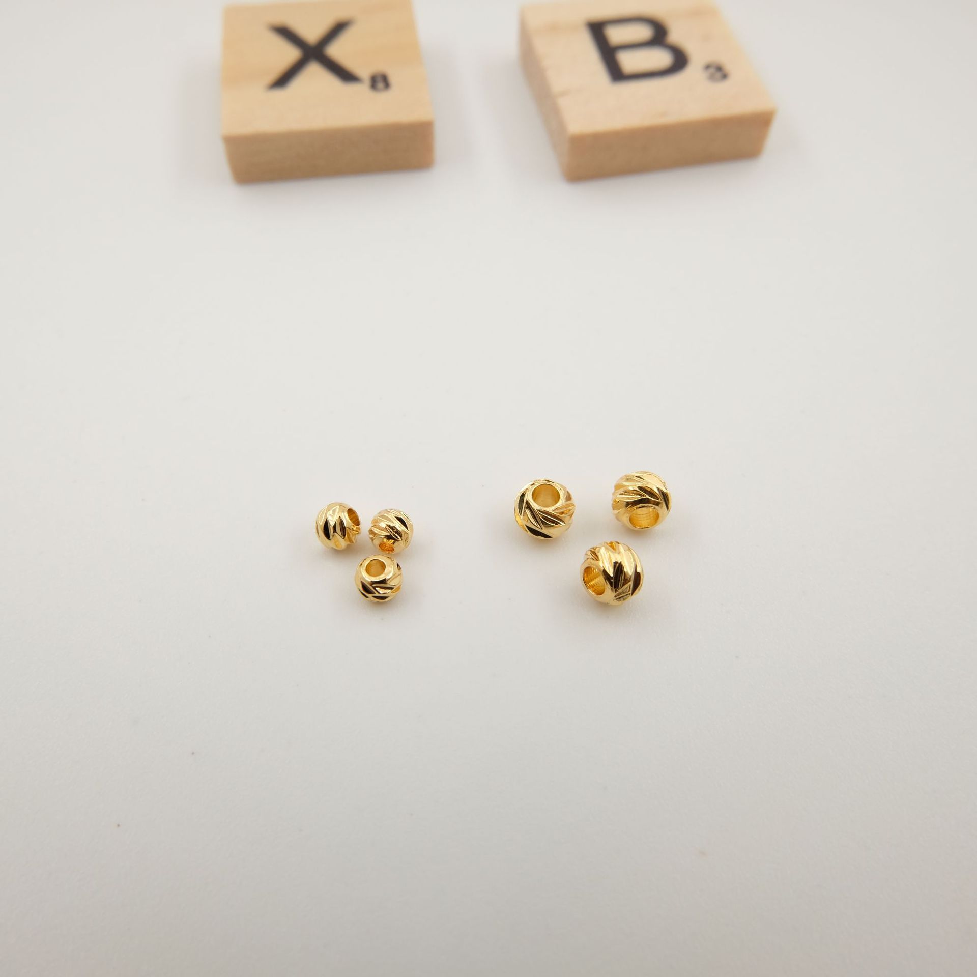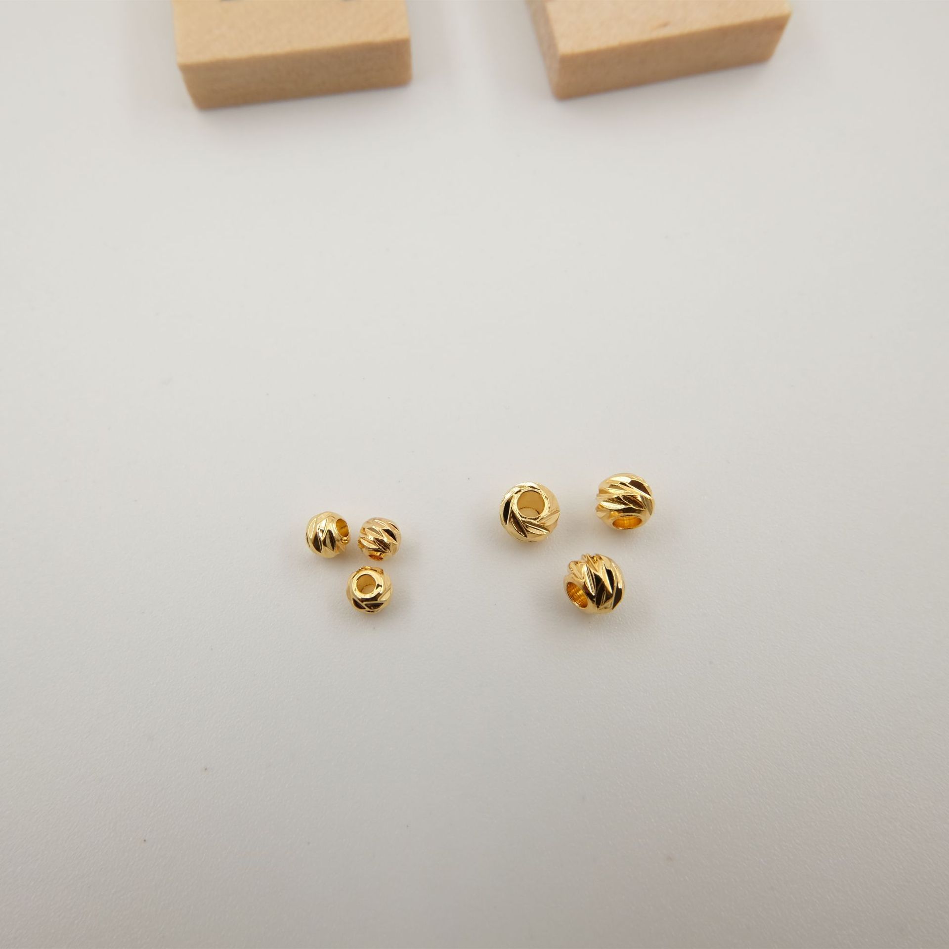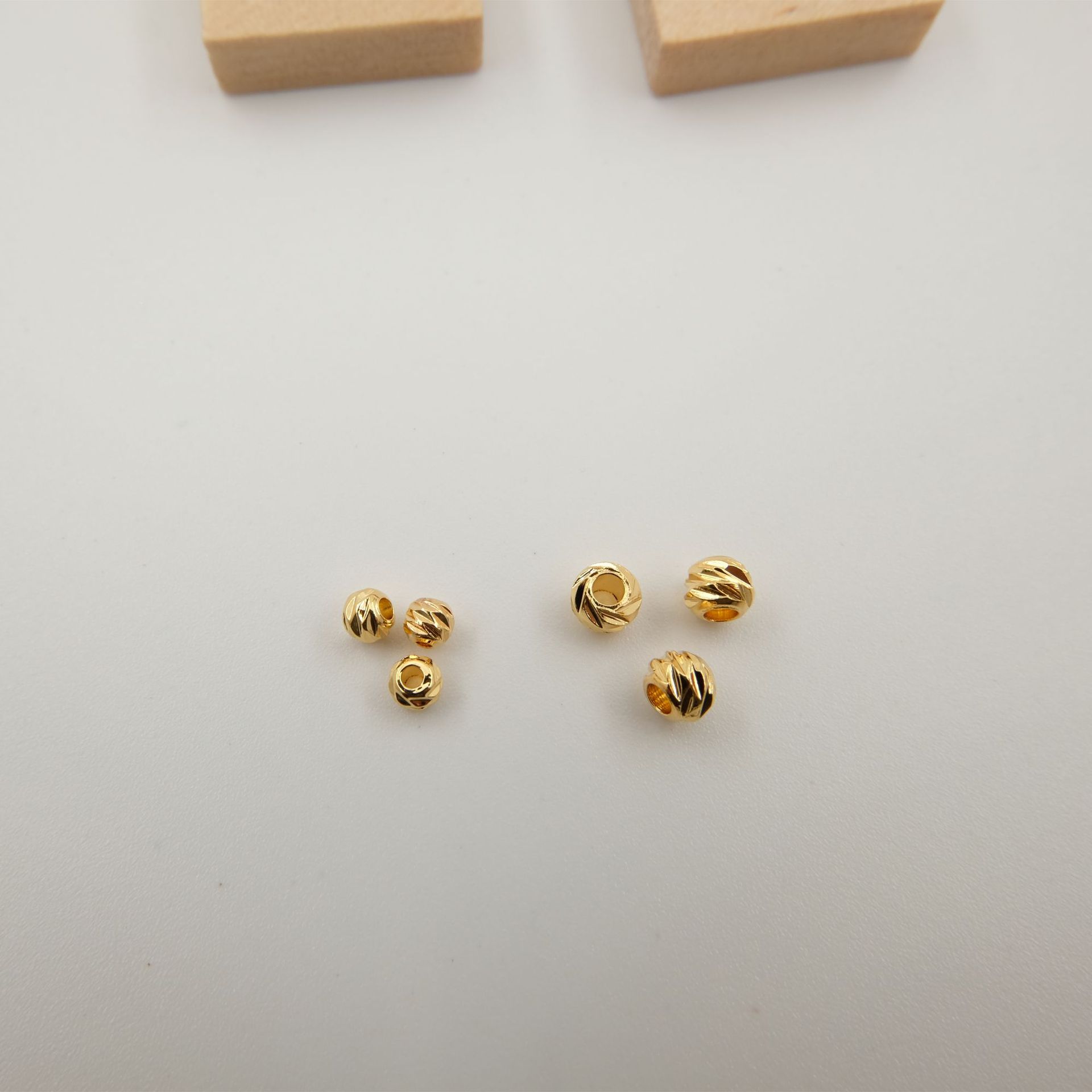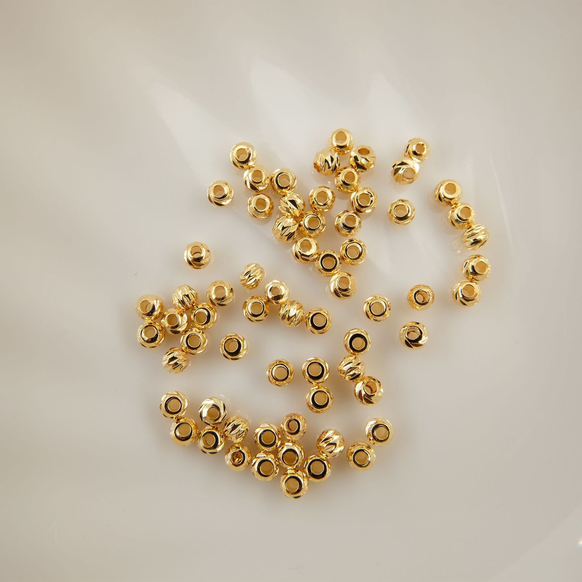銅メッキリアルゴールド強力な色保持水平パターンスイカビーズ 14K ゴールドメッキ銅ラウンドスペーサービーズ DIY ブレスレット車の花小さなゴールドビーズ