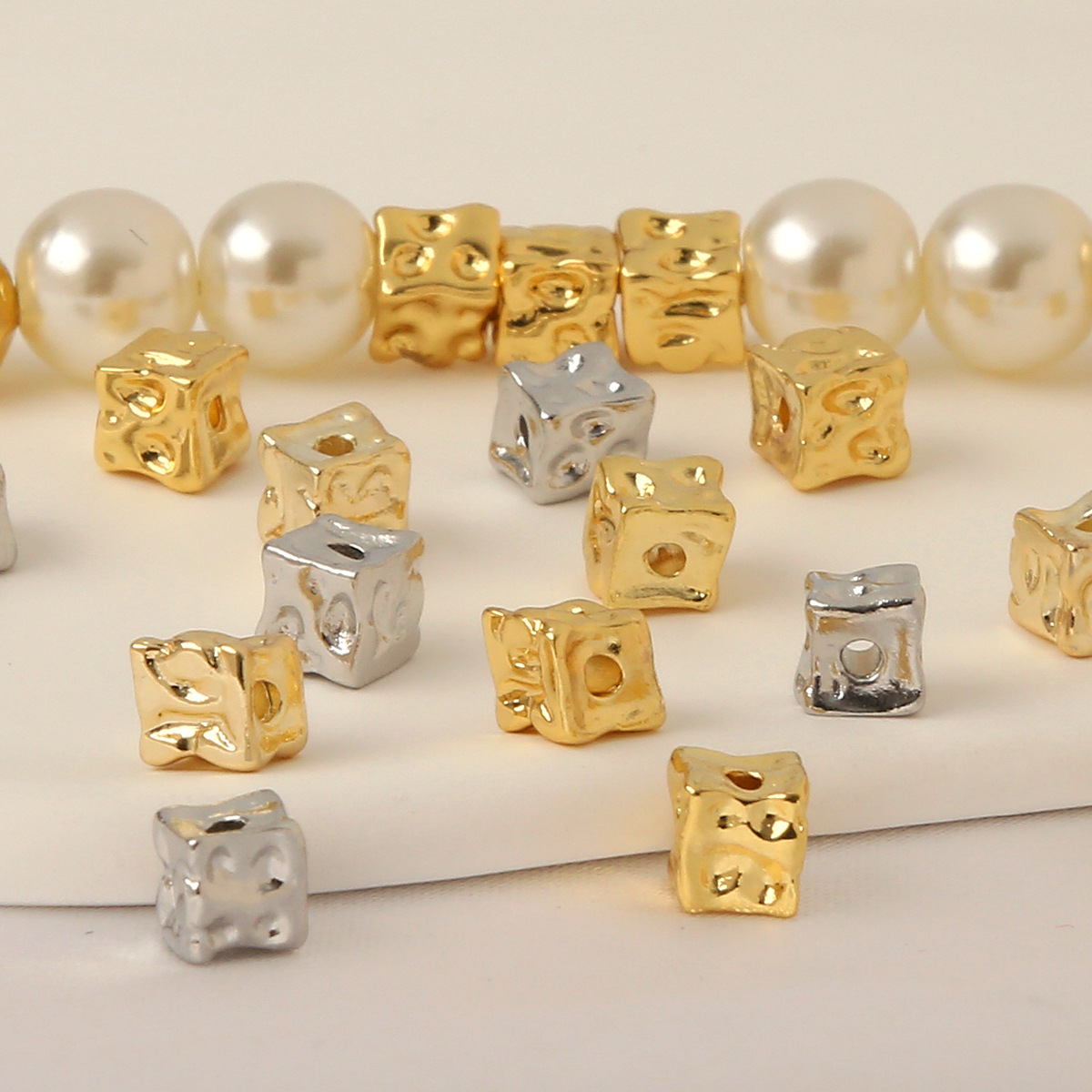 14k金メッキ保色台形暗紋隔珠正方形通孔凹凸紋隔片DIYチェーンネックレスチーズビーズ