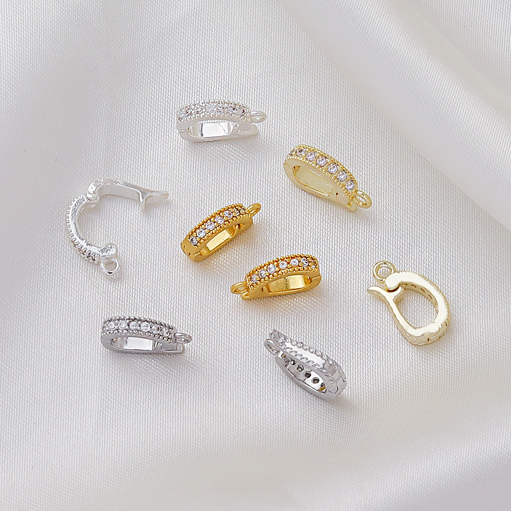 镀真金微镶锆石万能扣18K包金玉石珍珠吊坠扣手工diy手链项链夹扣