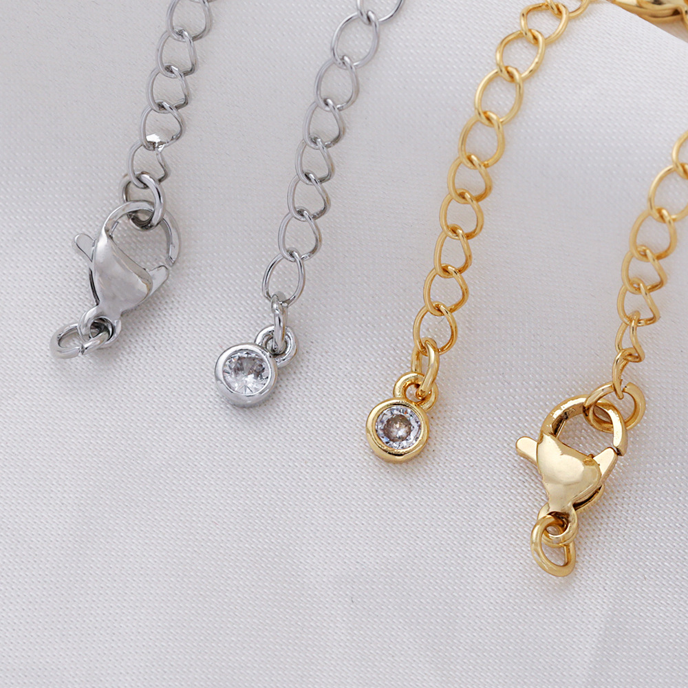 14k镀真金保色尾链延长链带龙虾扣锆石坠diy配件手工项链手链配件
