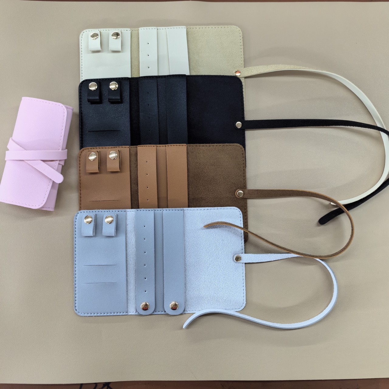 現物革アクセサリー巻きバッグPU皮質ストラップイヤリングジュエリー折り畳み指輪ネックレス携帯収納袋
